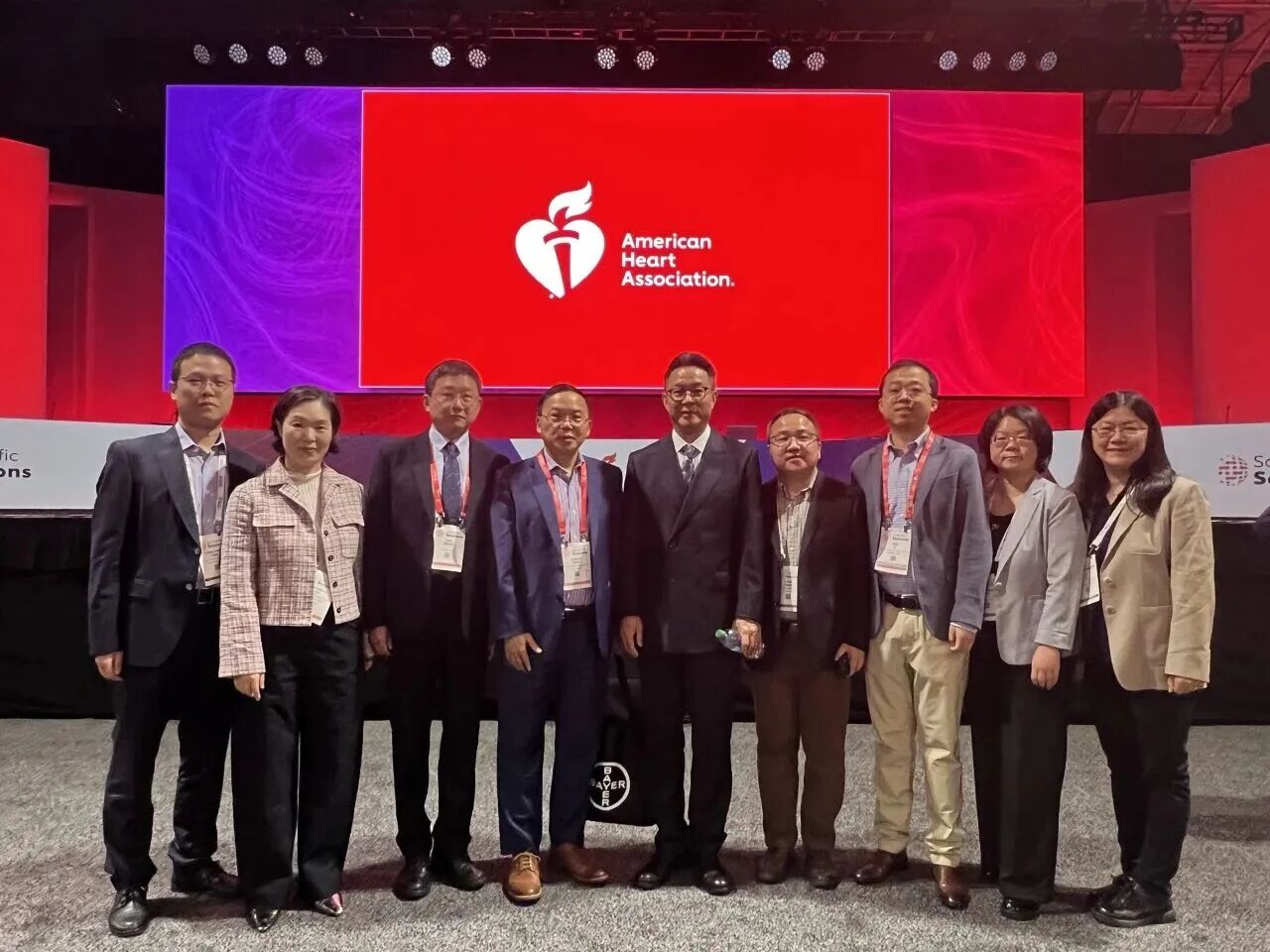 Group Photo of Dr. Junfang Xu, Dr. Yongliang Fang, and Prof. Jianping Li's Team at the AHA 2025 Conference