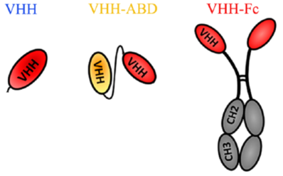 本文描述的三种靶向CLDN18.2的抗体结构分别为:靶向CLDN18.2纳米抗体(anti-CLDN18.2VHH with his tag)、靶向CLDN18.2纳米抗体与白蛋白结合域(ABD)融合(anti-CLDN18.2VHH-ABD)、靶向CLDN18.2纳米抗体与IgG1 Fc片段融合(anti-CLDN18.2VHH-Ec)。将这些抗体用89Zr标记后,分别从亲和力、药物代谢动力学及组织分布等方面进行了比较,结果表明89Zr-anti-CLDN18.2VHH-ABD具备较好的肿瘤靶向能力,且在肝脏等正常组织中蓄积较少,安全性较高,是最佳的CLDN18.2诊断抗体。